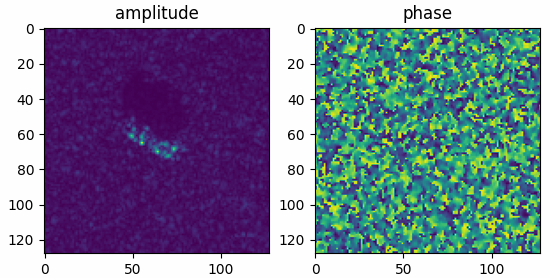 import torchbox as tb import matplotlib.pyplot as plt filepath = datapath + 'BTR70_HB03787.004' x = tb.mstar_raw(filepath, ofmt='ap') print(x.shape, th.max(x), th.min(x)) plt.figure() plt.subplot(121) plt.imshow(x[..., 0]) plt.title('amplitude') plt.subplot(122) plt.imshow(x[..., 1]) plt.title('phase') plt.show()